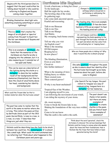 Grace Nichols Hurricane Hits England / Essay based on the poems "Blessings", "Hurricane Hits ... - The layout of a poem changes from one to the next and each one sets out differently to convey a different message every time.